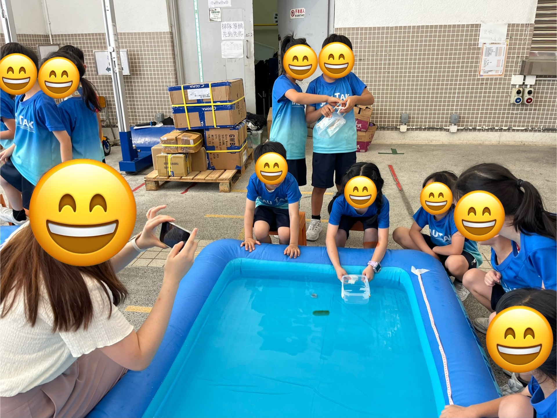 學生測試小遊艇的航行效果,了解影響小遊艇航行的不同因素,經過改良及測試,讓小遊艇航行得更遠。